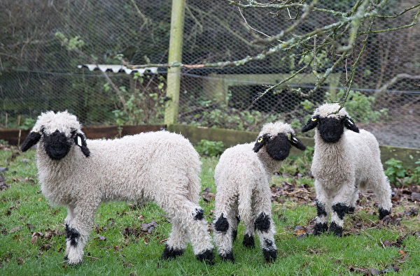2016年12月14日,英国康瓦尔郡一座农场所饲养的瓦莱黑鼻羊。(Matt Cardy/Getty Images)