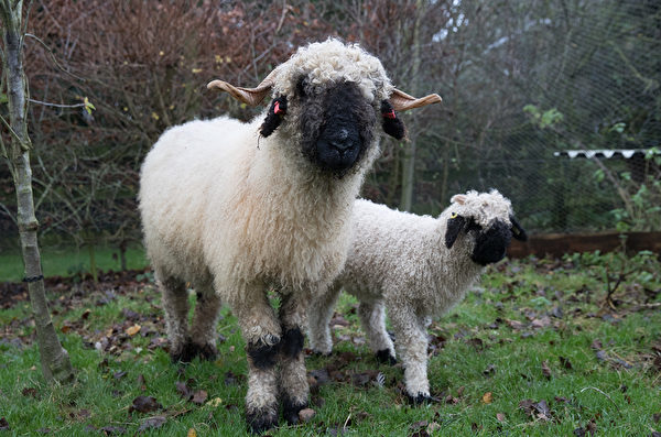 一般的绵羊已经够可爱了,而瓦莱黑鼻羊这种绵羊品种却更可爱。它们的特征是脸部、耳朵、双膝和四肢均为黑色,毛皮却是白色,而且呈蓬松状。而公羊和母羊都有螺旋状的角。