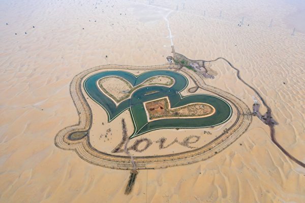 除了世界第一高楼哈里发塔(Burj Khalifa)之外,位于中东的阿联酋还有不少著名景点,其中包括一个坐落在沙漠中的人造心形湖──爱情湖(Love Lake)。它呈现出两颗交叠的心,似乎有心心相印的意味。