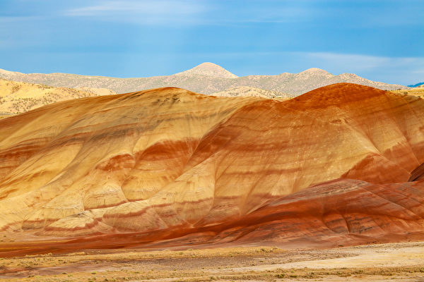 彩绘山丘(Painted Hills)位在俄勒冈州(Oregon)中部,是约翰戴伊化石床国家遗址其中一个景点。 彩绘山丘就像上天打翻的调色板,柔和的红,鲜嫩的黄,夺目的金,淡雅的黑。由古代河漫滩堆积而成,土壤里面包括高度的铁质和各种矿物质,与水和空气的结合交织出各种颜色,每一层色彩都在静静诉说着一个亿万年前埋藏在地底的故事。