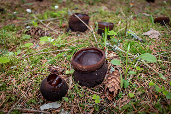 据英文媒体报导,此次发现地是伍德斯托克(Woodstock)北部的格拉斯维尔(Glassville)。这种蘑菇拉丁学名为Sarcosoma globosum,但它有一个很形象的名称叫“女巫釜”,因为它的样子看上去真的很像动漫中女巫使用的大锅,呈深色圆形状,顶部带有略小的开口,外皮看上去还有哑光效果,里面充满了某种发亮的粘稠状物质。