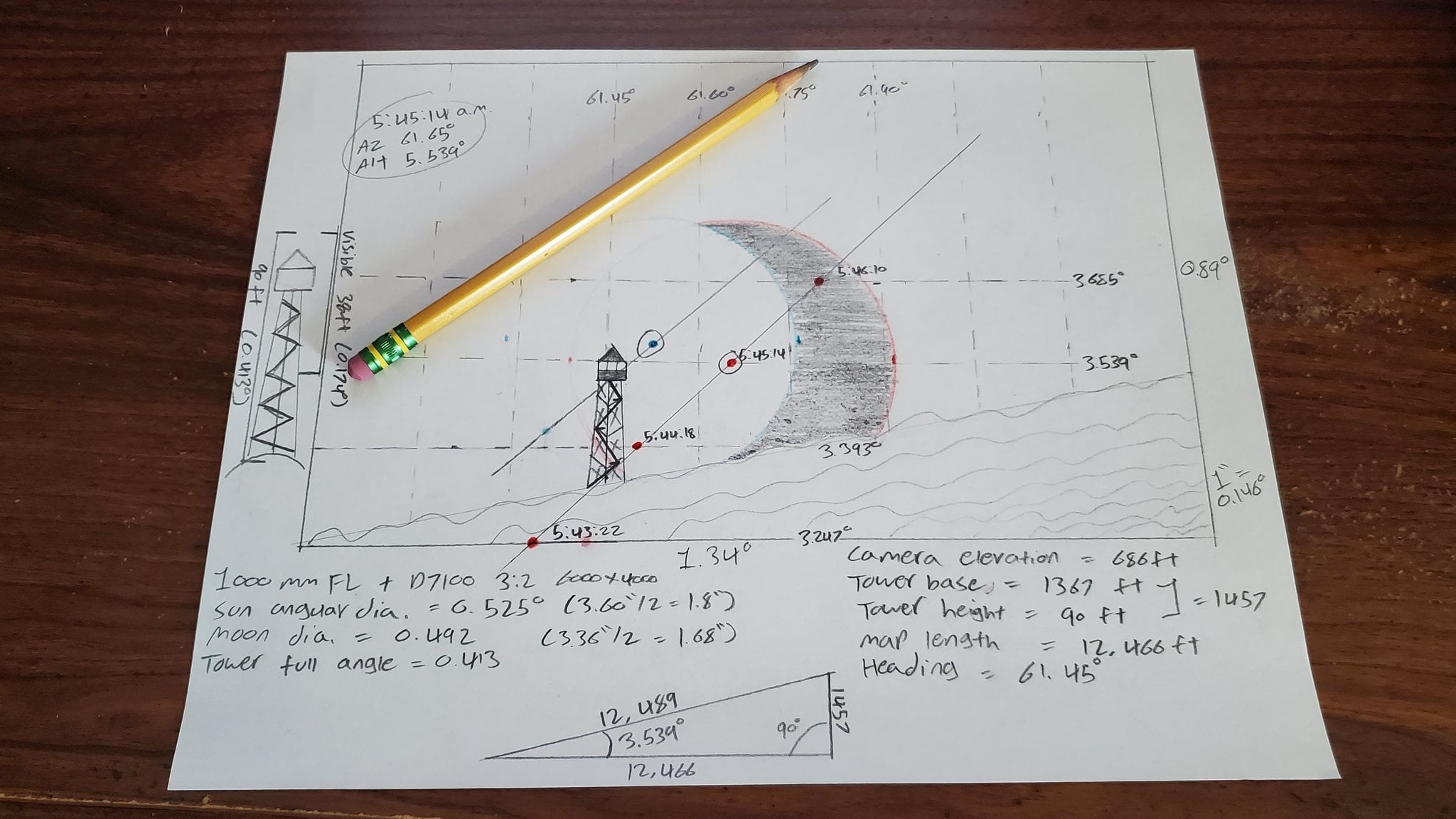 “由自己负责”,他于6月9日勾勒出自己预想的草图并发布到推特上,“如果明天早上天气晴朗,但拍到的照片看起来不像这个的话,请随意嘲笑我”,并补充说草稿纸上还附有许多计算公式,包括角度等细节。