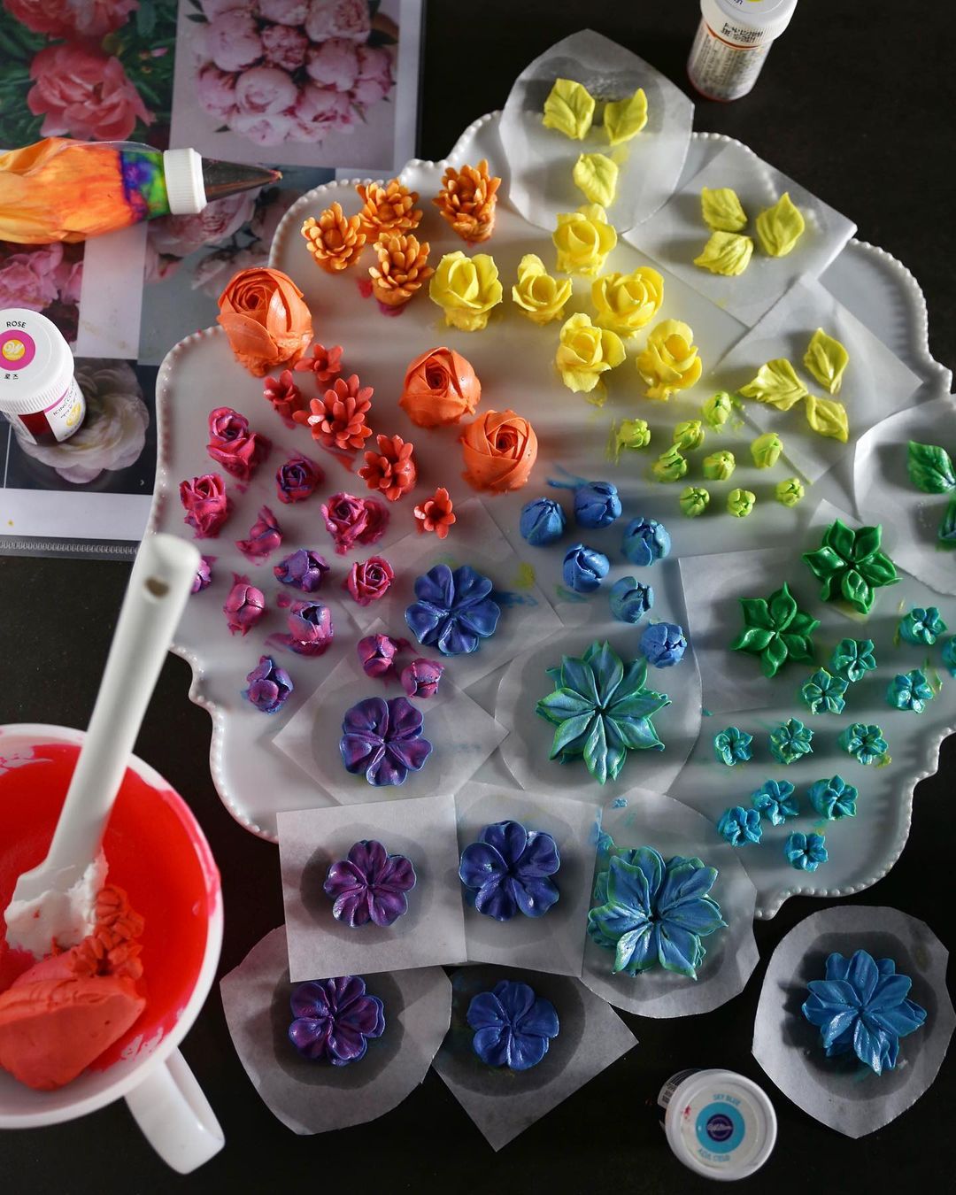 这种蛋糕要求蛋糕师有足够的艺术功底,不管是花朵的配色还是摆位都很讲究,就像花艺一样。