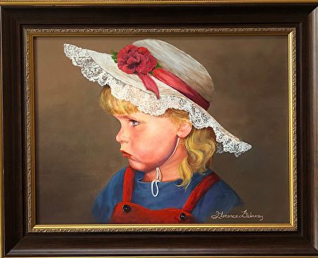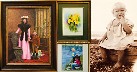 到目前为止,她的作品集包括绘制儿孙的水彩画和油画、鲜花,还有激发她想像力的风景画。其中,她的一幅令人印象深刻的作品“噘嘴的米歇尔”绘制的是她的孙女,利用颜色来创造明暗度,并用复杂的细节来表现帽子上精致的花边。
