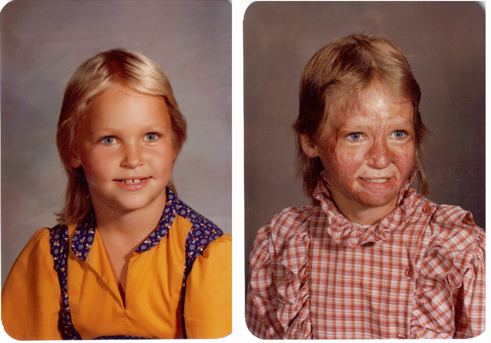 但小丹妮特就像一名勇敢的战士,她坚强地活过来了,不幸的是,她的全身烧伤面积高达70%。这场意外在她身上和面部留下许多疤痕,小小年纪的她从此经历无数次的复健治疗。
