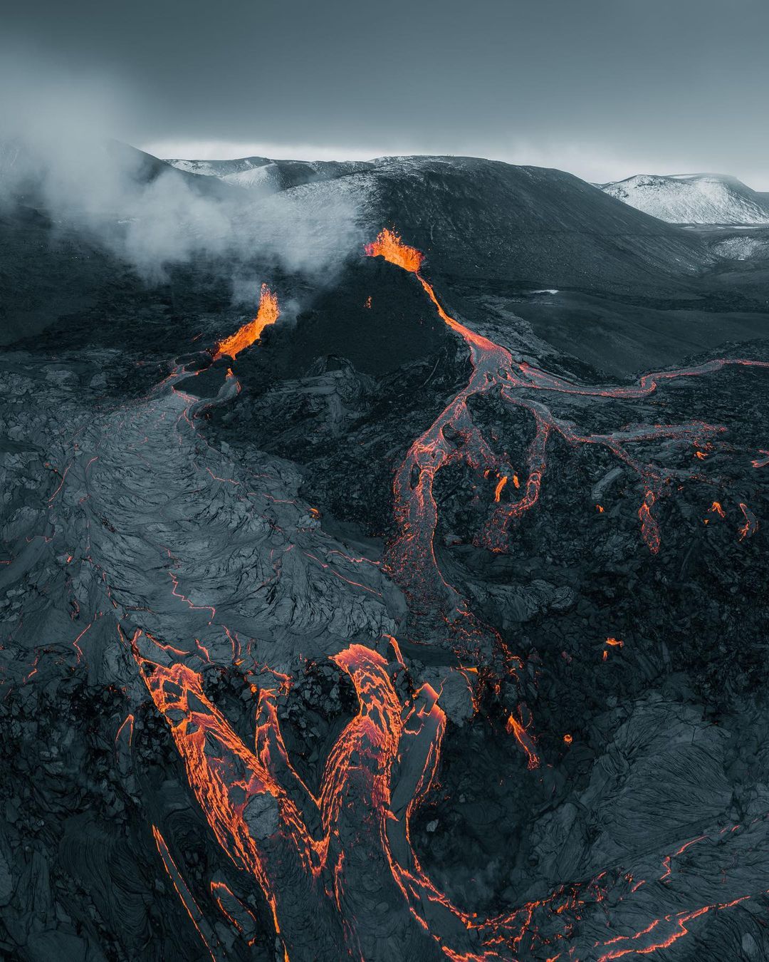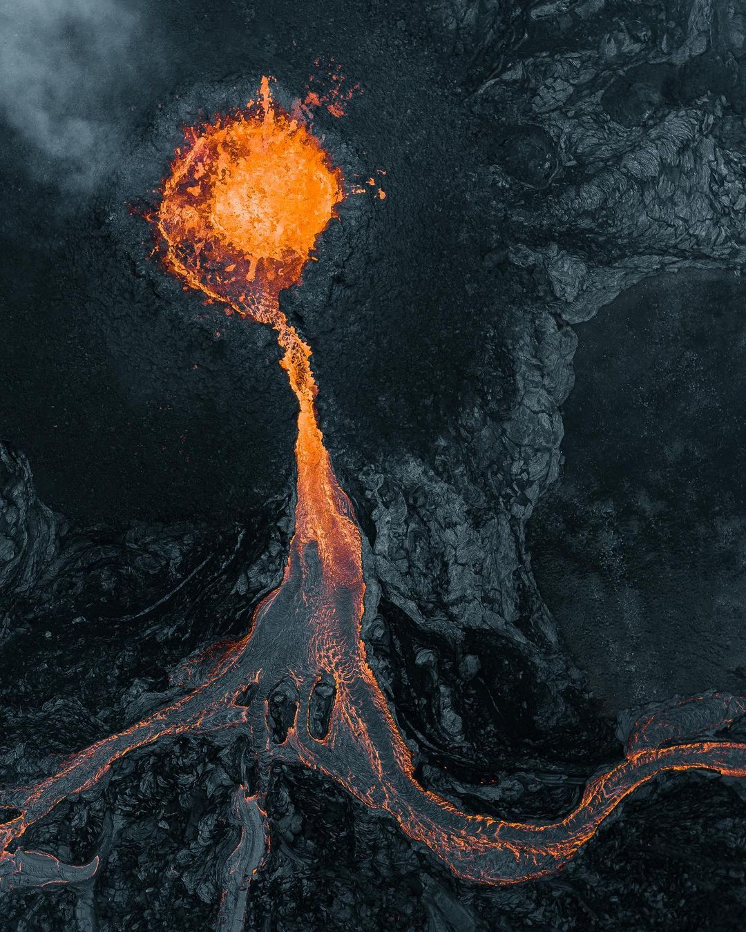 无人机摄影师Thrainn Kolbeinsson用他的设备在火山上空近距离拍摄到了非常壮观的熔岩喷发画面,他已将这些照片和视频分享在Instagram上。人们不免好奇他的无人机是如何在如此危险的飞行中幸存下来的。