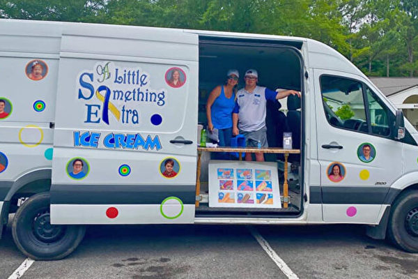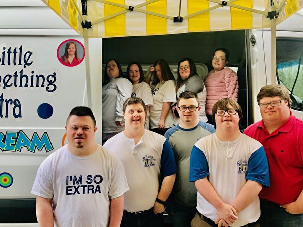 他们培训了十几名唐氏症青少年在卡车上出售冰淇淋。(由米歇尔‧诺伍德提供)