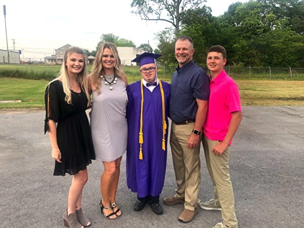 亨特和家人。(由妈妈米歇尔‧诺伍德提供)