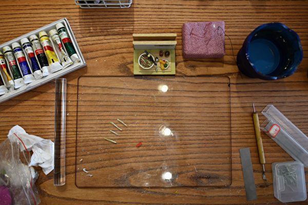 2020年8月18日,越南女子阮氏河安的工作桌与制作模型的材料。(MANAN VATSYAYANA/AFP via Getty Images)