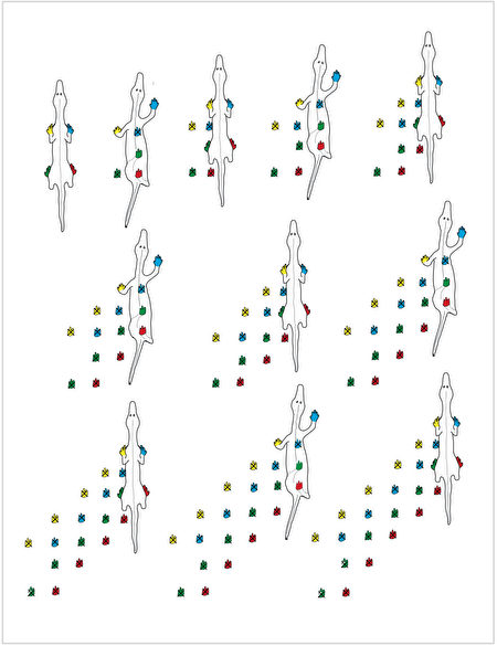 让研究团队感兴趣的是这两只动物独特的步态。研究人员重建了这种动物足迹的顺序,显示出一种很明显的步法,叫做“横向序列行走”(lateral-sequence walk),即动物一侧的两条腿依次移动,后腿跟随前腿,与另一侧的两条腿交替动作。