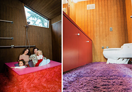 不过,最充满惊喜的是它的内部装潢。总共2千476平方英尺大的屋内空间到处铺满了紫色和绿松色的粗毛地毯,而家电设备则是原封不动的70年代产品。