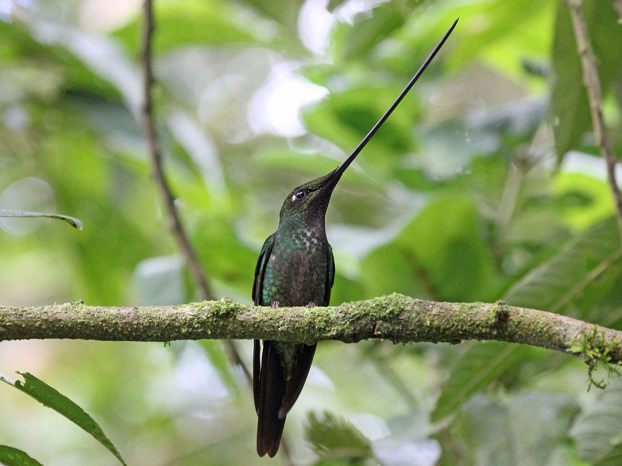 由于鸟喙不寻常的长,因此刀嘴蜂鸟停歇休息时必须将头部向上昂。(DickDaniels/维基百科)