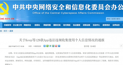 中央网络安全和信息化委员会办公室近期动作连连,除了5月公布105款软体涉嫌非法收集用户资讯外,在11日又公布129款软体同样涉嫌非法收集用户资讯。这次公布的软体类别中,运动健身类、新闻资讯类、网络直播类、应用商店类、女性健康类、网路购物类、学习教育类、婚恋相亲类等8个类别。
