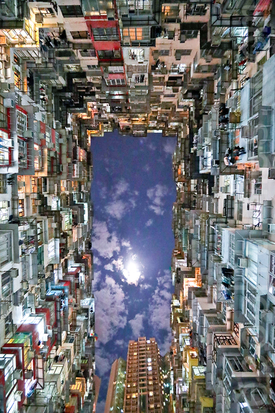 夜幕降临,明月高升。点点灯火骤起,仿如狮子山下万家灯火,别具另一片景色。其稠密的高楼题材,营造出震撼而又神秘的东方韵味,令人每一瞬间都想用相机的快门好好记录下来。也吸引荷里活的大师们纷纷来此取景。