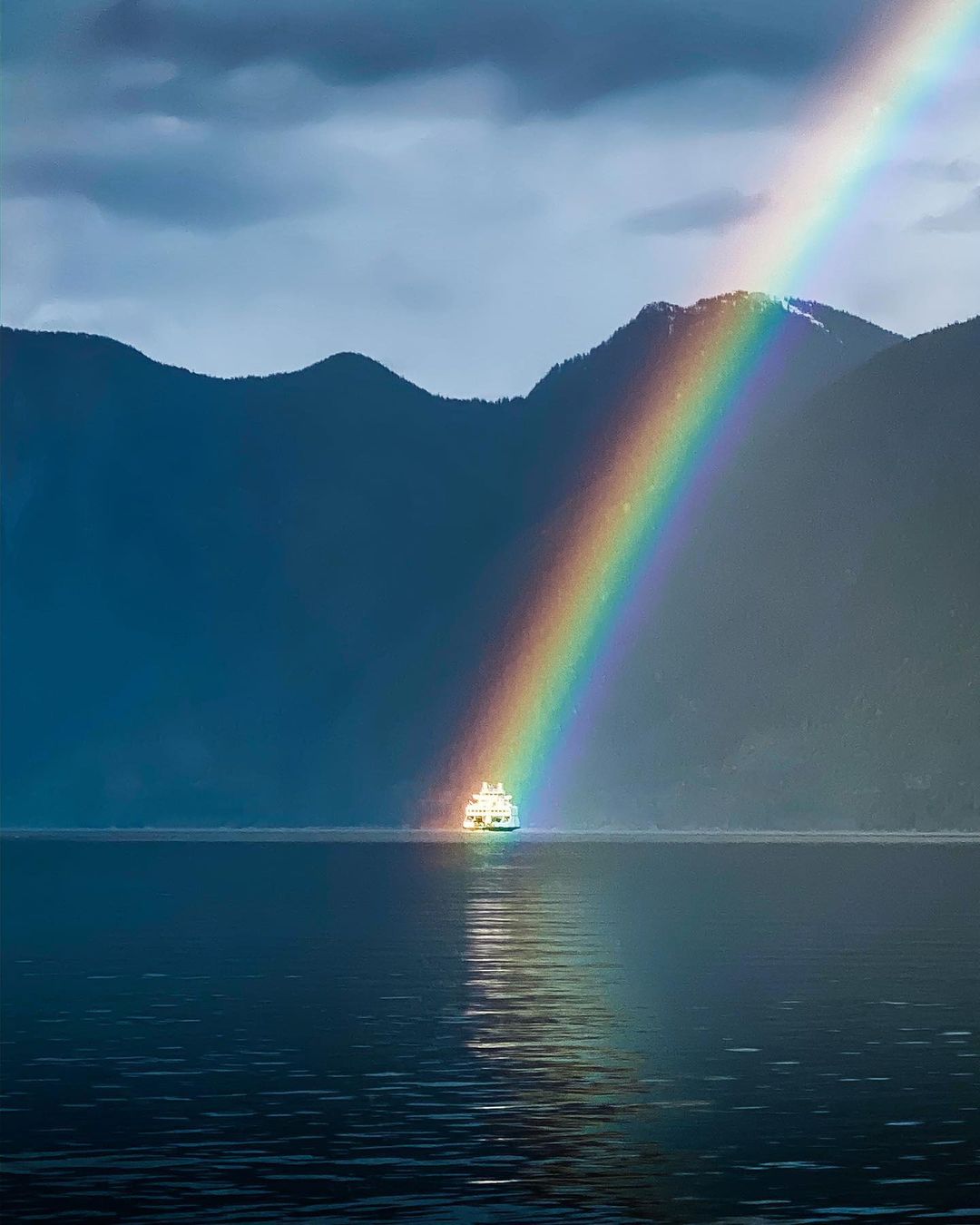 然而,加拿大一位摄影师去年更是捕捉到一张在海上行驶的渡轮与彩虹尾端完美融合的奇特景观,当他在网络分享这幅美丽的画面后,迅速引起网友热议。