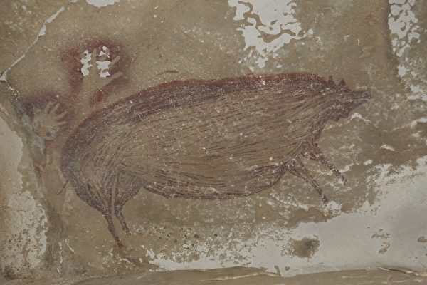 考古学家在印度尼西亚(简称印尼)苏拉威西岛一个偏远的山谷洞穴中,发现一幅保存完好的洞穴壁画,画面的主角是一头栩栩如生的疣猪,创作年代距今至少4.55万年,被认为是史上最古老的具象艺术品,也是目前世界上已知最早的动物描绘。