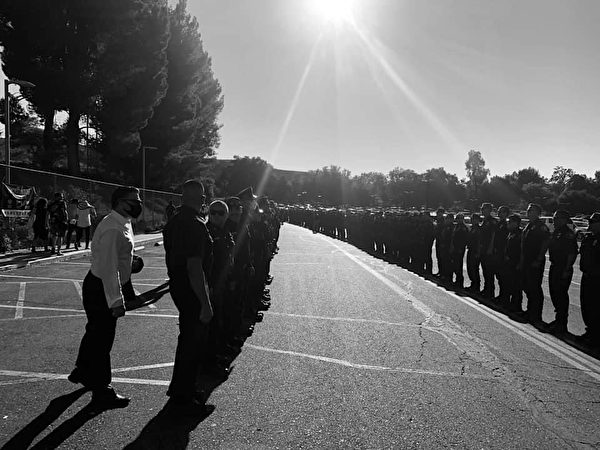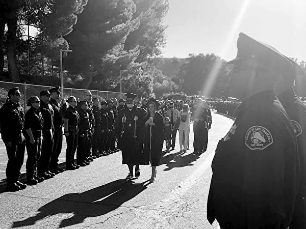 尽管准备时间仓促,但典礼的当天仍有三百多名消防员来到现场,他们身着统一的黑色制服,笔直的站立于道路两侧,几乎站满了桑戈斯高中(Saugus High School)的停车场。不仅如此,消防直升机也来了,它们盘旋在典礼上空,都在欢迎乔瑟琳和她的家人们。