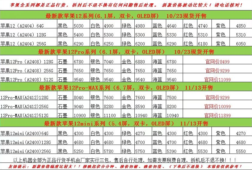 13 出来了,。但是出拿货价格表 应在下个月了。  对比了下12 的价格从12 号开始到现在部分机型都已经降了六百左右了, 估计下跌幅度 最多不会超过1100。 原有 手机有库存。而且又不是所有人都买得起最新款。 要留着部分机型 和安卓抢市场。