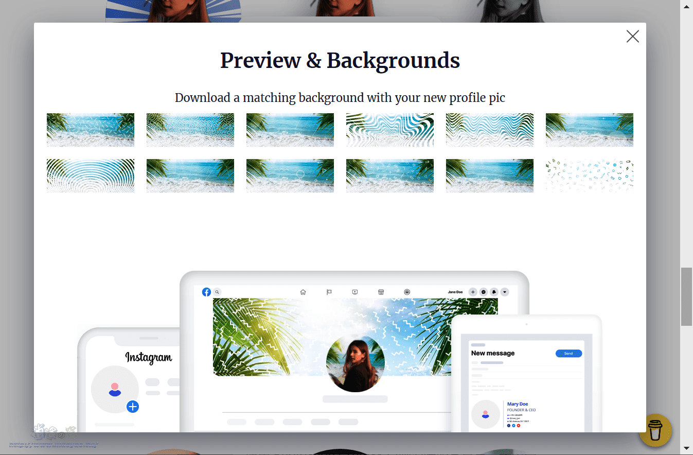 除了下载头像图片,Profile Pic Maker 还提供背景图片可当成个人主义的封面,点击「预览」按钮即可下载背景图。