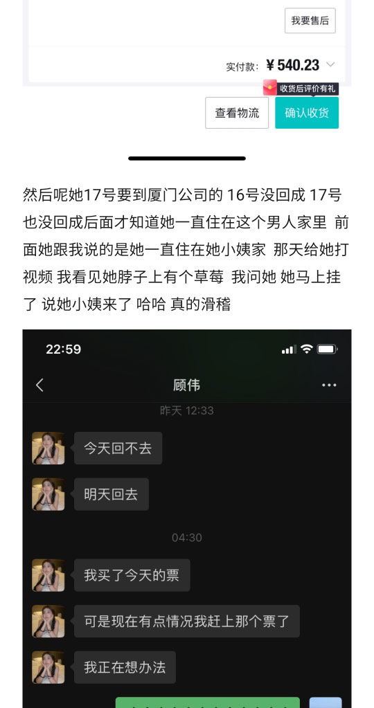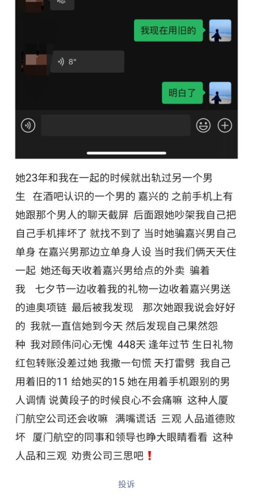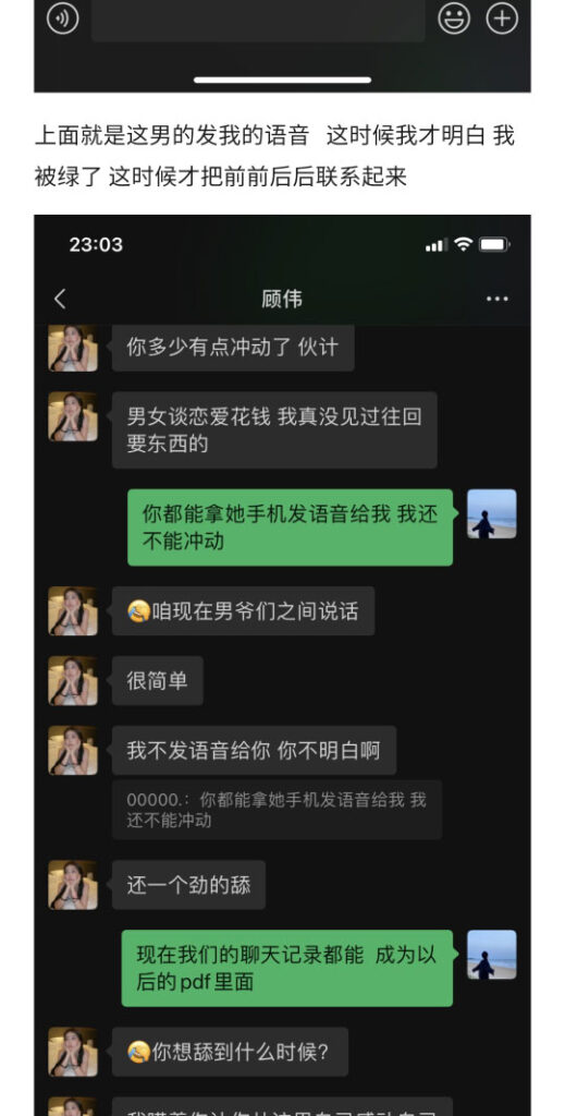 山东邹城顾伟,这下出名了,和男友恋爱448天,瞅准男友回家过年的时机,彻底解放本性,年初一约炮约到初三,被男友质问,年初八,好家伙,男小三开嘲讽了,果然是臭气相投。