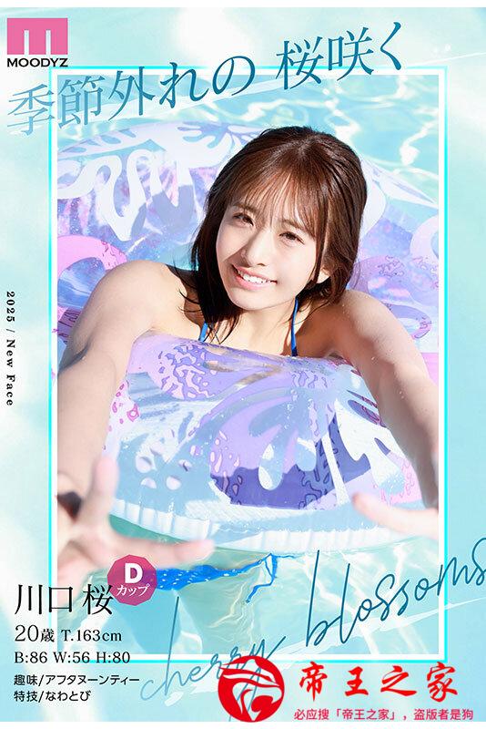 她是片商Moodyz在8月推出的专属新人「川口桜(川口樱)」,不但个性亲切,活力100%、魅力100%,就连笑颜也是100%,号称全新可爱的「New Hero」降临!
