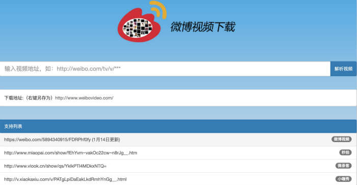 微博视频解析下载:https://www.weibovideo.com/