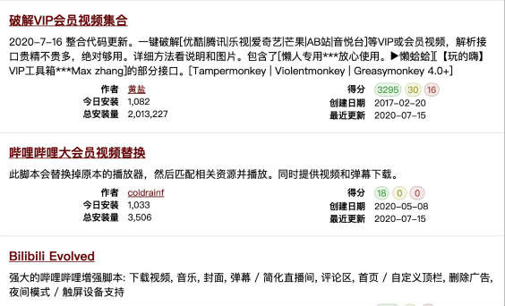 共享干货 只需要浏览器安装一个脚本B站大会员,免费看!更有全网VIP视频解析