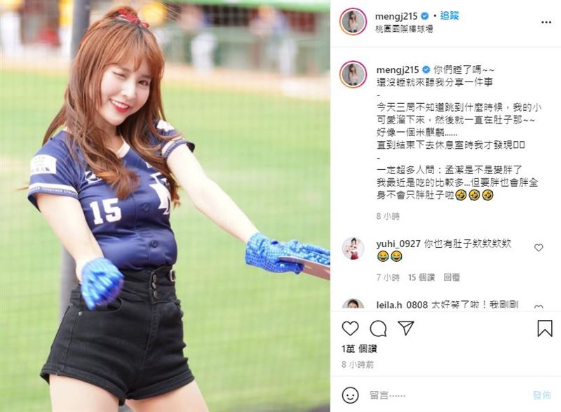 甜美可爱的孟洁,除了在运动实境节目《全明星运动会》担任蓝队女经理,被称为「最正经理」,也是中华职棒乐天桃猿啦啦啦队人气成员,平日会在社群平台和粉丝分享日常,今(......