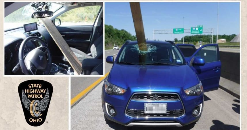国际趣事 她行驶高速公路突遭「巨大木板插进挡风玻璃」!惊险逃死画面曝光!