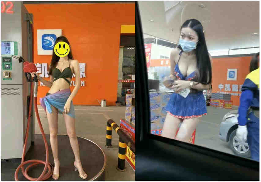 世间百态 广西一加油站,加1元享受比基尼美女服务,强烈建议大力推广此类服务