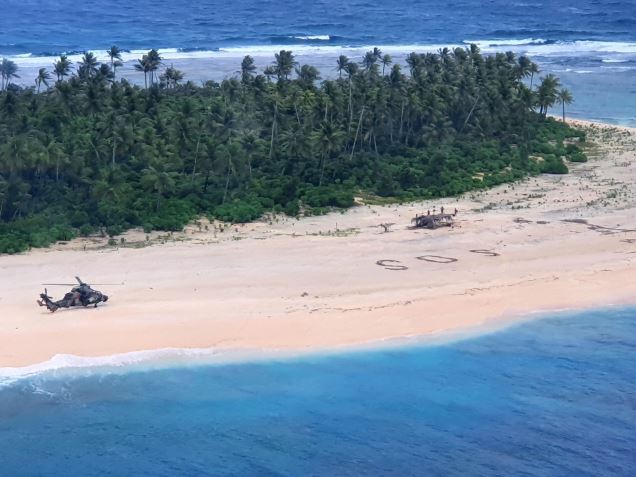 热门资讯 无人岛沙滩发现巨幅SOS 澳洲直升机救起现代鲁宾逊