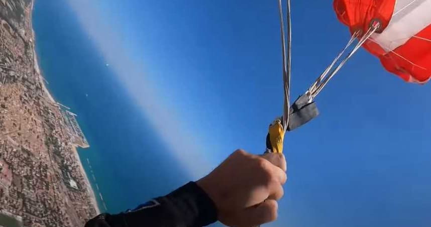 一名30岁男子日前和女友在义大利法诺(Fano)跳伞,没想到他从14000英尺(约4300公尺)跳下后,打开降落伞竟发现绳索全部纠缠在一起,他开始在空中不停打转......