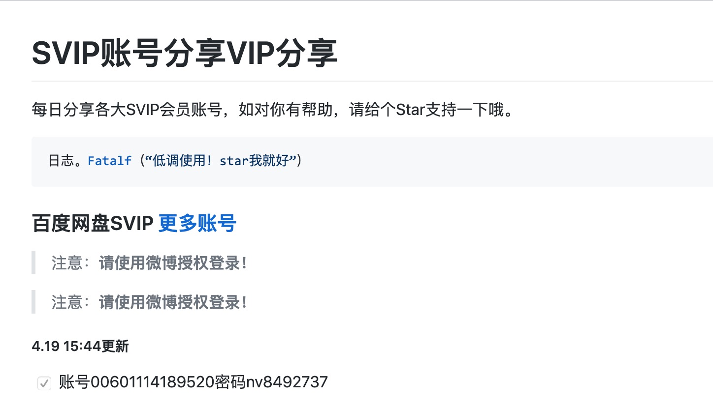 Github上几个分享会员的项目,主要以百度网盘会员分享为主,也有迅雷会员、爱奇艺会员、优酷、腾讯、芒果等VIP等。都是每日人工维护的,从网络上搜集的,使用时看......